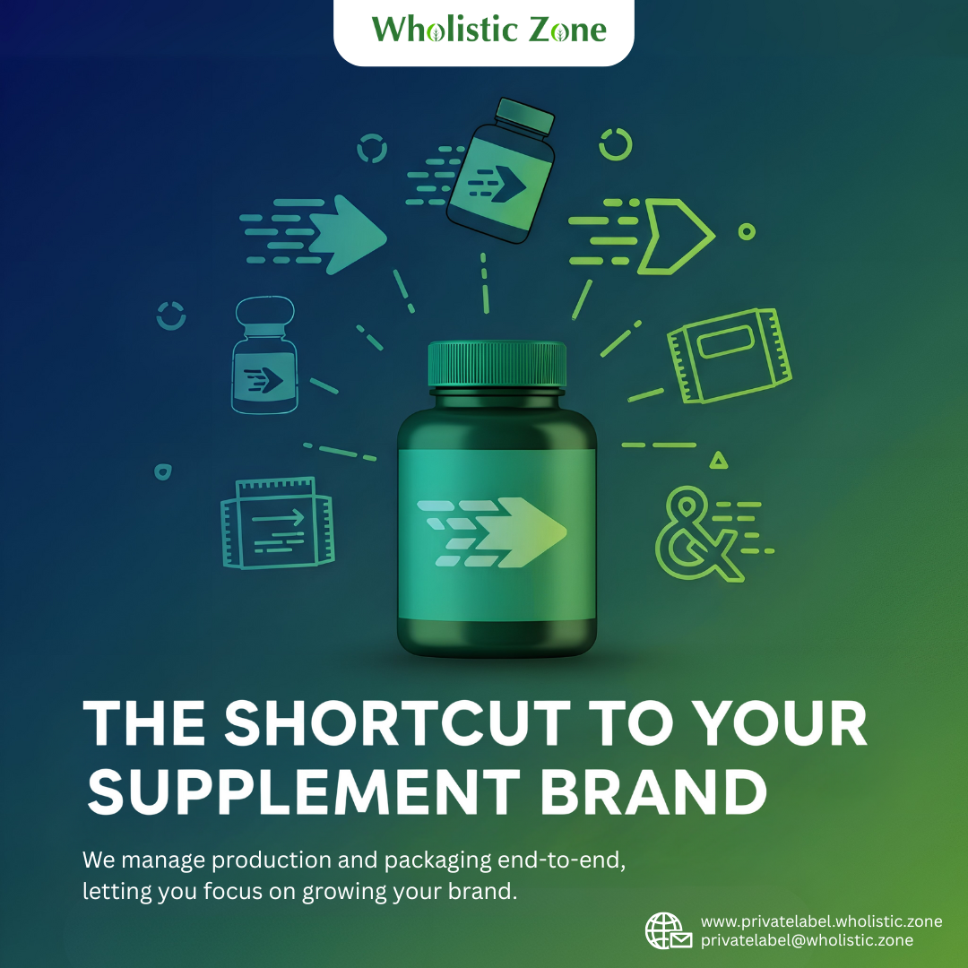 Private label manufacturing allows your brand to launch custom supplements, herbal teas, organic superfoods, and beauty products without owning a factory. Wholistic Zone manufactures high-quality private label products and packages them under your brand, perfect for businesses seeking B2B supplement manufacturing or white label wellness products.
